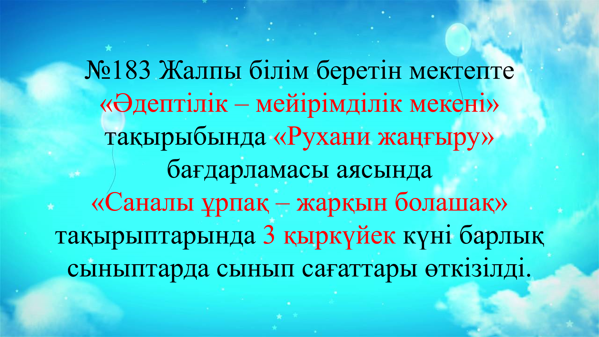 03 қыркүйек 2019 20 1 2 3 4 5 №183 ЖББМ "Саналы ұрпақ - жарқын болашақ " атты сынып сағаттары Осы беттің QR-коды:QR-код этой страницы: