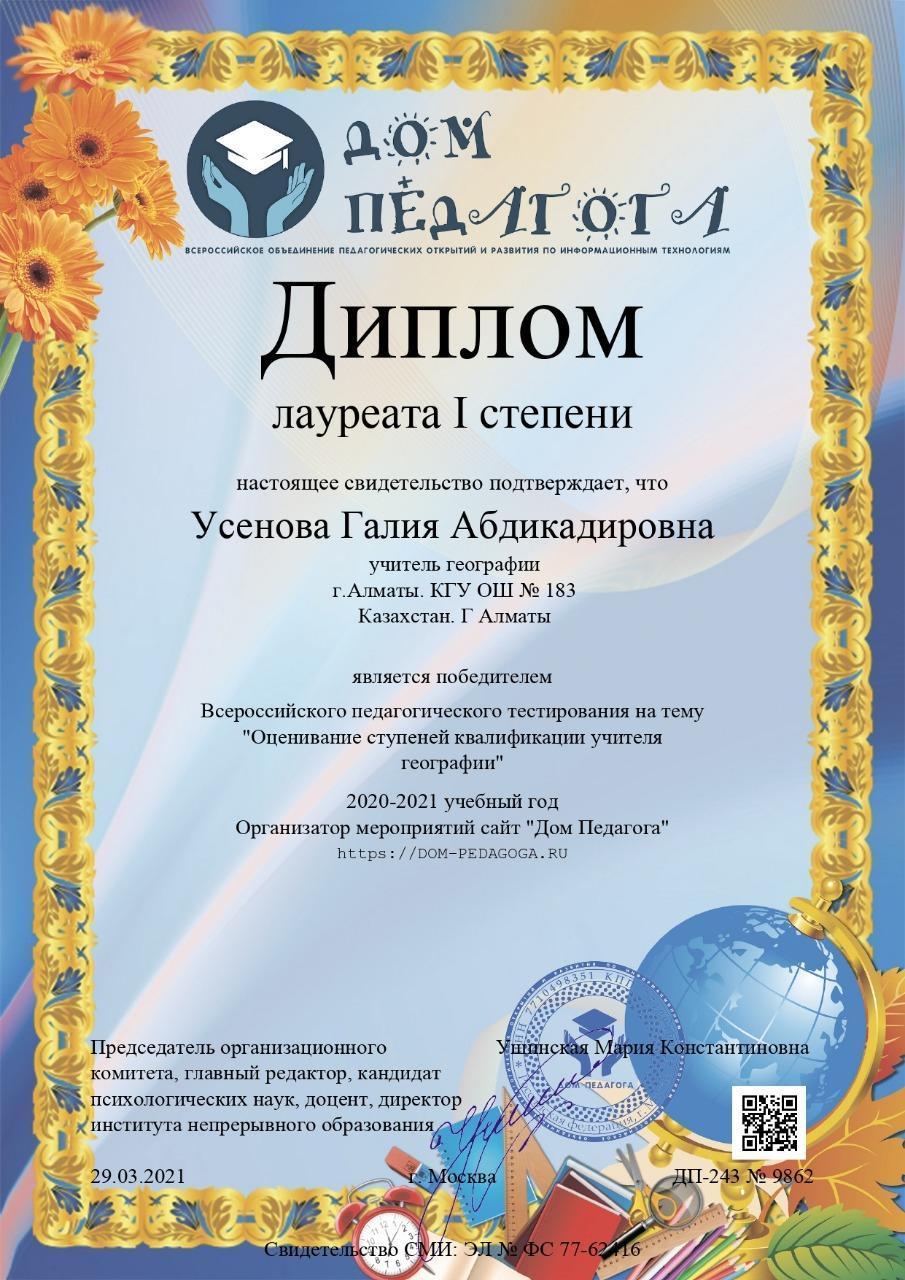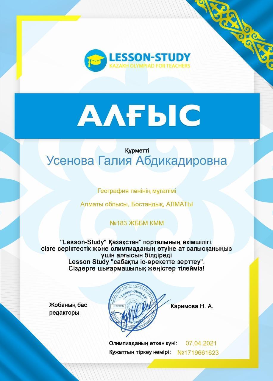 » Усенова Г.А. жетістіктері
