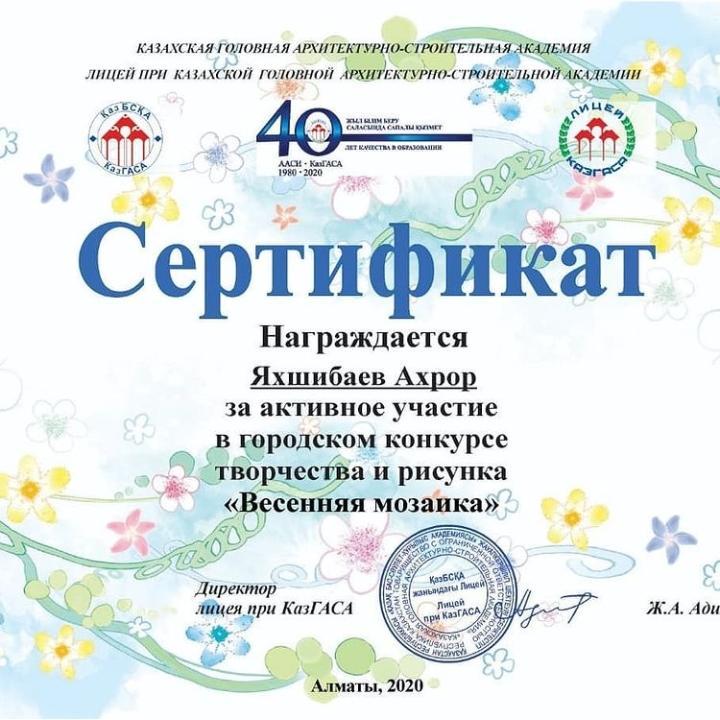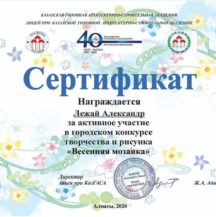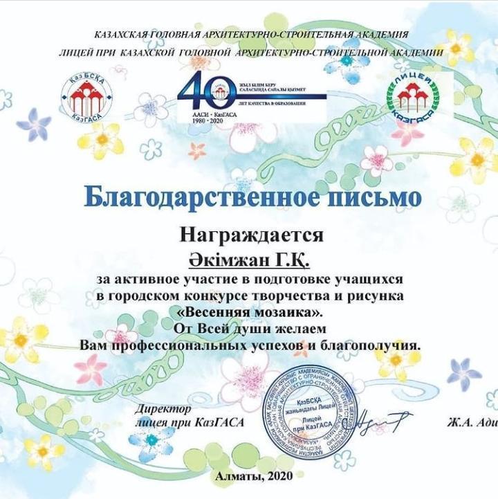 30 сәуір 2020 0 1 2 3 4 5 Қашықтықтан өткізілген қалалық байқауға 5-сынып оқушылары белсене қатысып, жүлделі орындары ие болды. Осы беттің QR-коды:QR-код этой страницы: